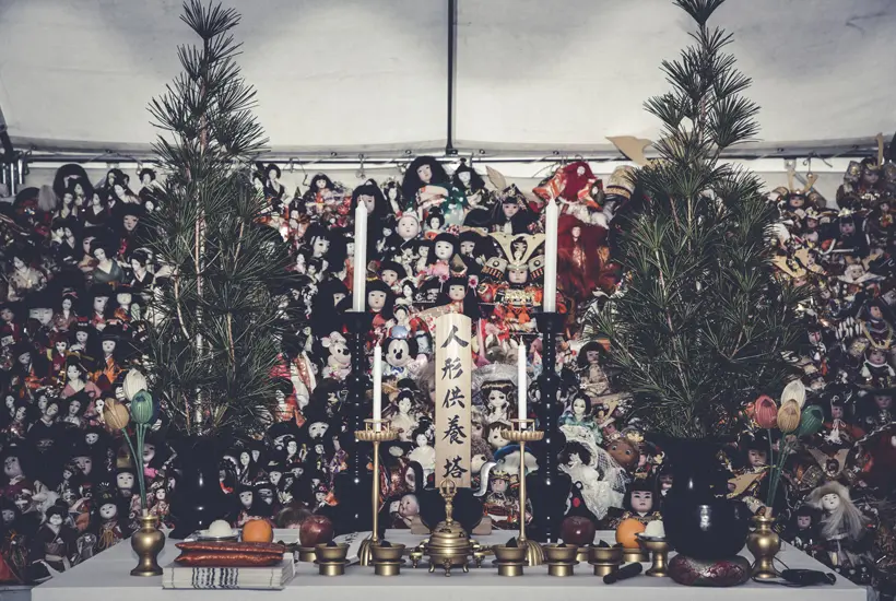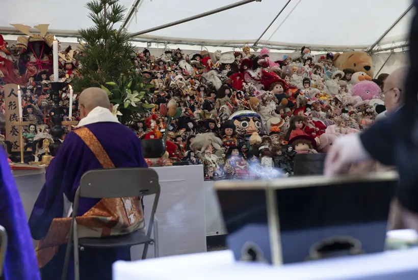 当寺では毎年、3月1日から11月19日(午前中)までの間に受け付けた、雛人形・日本人形・博多人形・ぬいぐるみなどの人形を供養いたします。私たちの為に役立ってくれた人形たちに感謝し、その労をねぎらい、仏教の教えに従って弔います。
