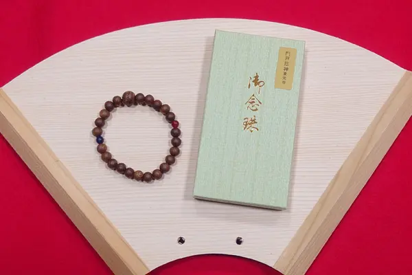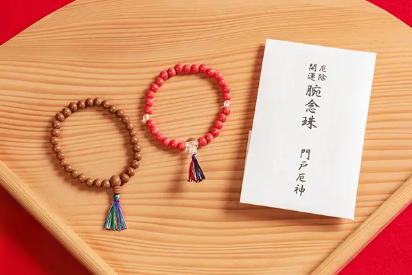 赤い珠は愛染明王を、青い珠は不動明王をあらわし、親珠は、二尊が一体となられた厄神明王を表します。毎日の健康と、特に厄除開運にお持ちください。