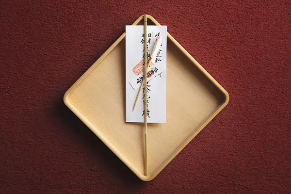 厄年には自分の身の回りのものを形式(かたしろ)にし、厄を払います。形式には女性は色つきの財布、男性は火箸などの金物やベルトなどの長いものが適しています。