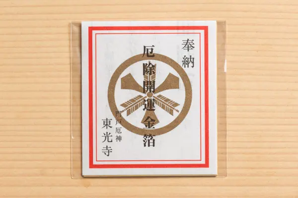 厄年を無事に終えたお礼として、厄神様に金箔を奉納いたします。